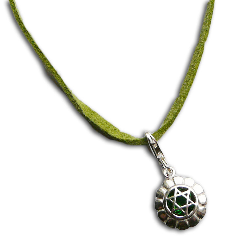 Zachte ultrasuede enkelband met symbool van de hartchakra.